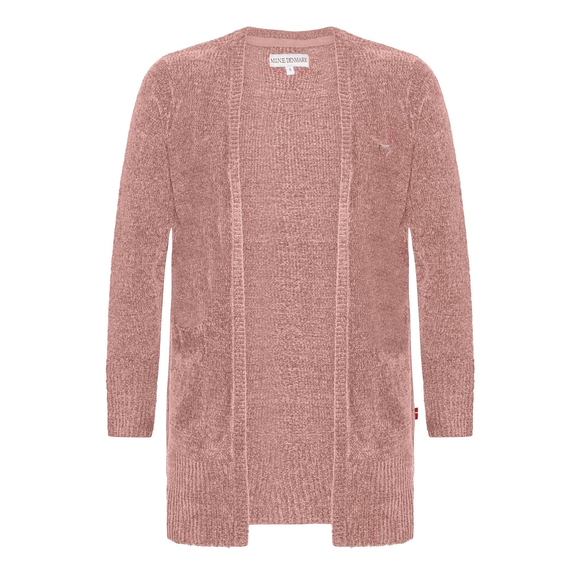 Cardiganen er fremstillet i 100 % akryl chenille, som føles ekstra blød mod huden og giver en luksuriøs fornemmelse. Den har en klassisk, åben front med praktiske lommer og et diskret broderet sølvhjerte på venstre side – en fin detalje, der tilføjer et feminint og personligt touch.