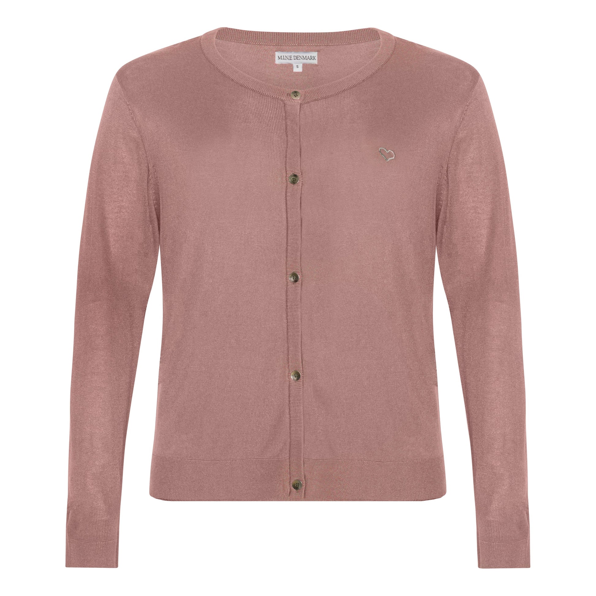 Designet er enkelt og tidløst med ribkanter ved ærmer, bund og halsudskæring, der giver et elegant udtryk. Cardiganen har en normal lukning med fine sølvknapper og et diskret broderet hjerte foran, som tilføjer et feminint touch.